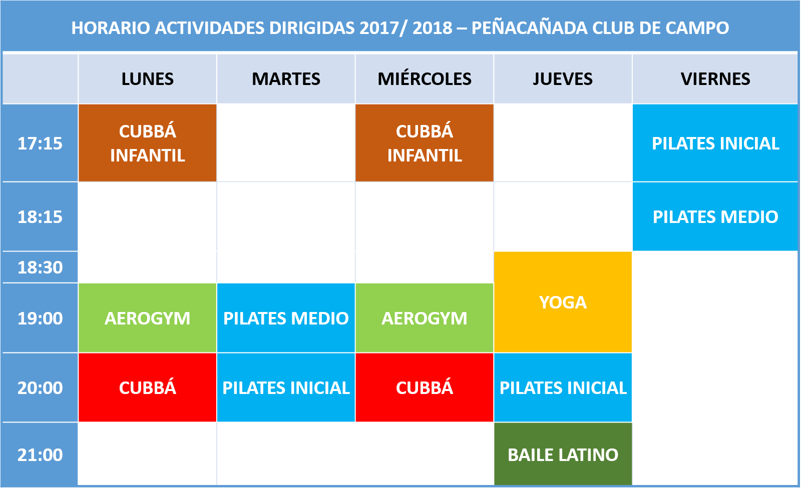 Peñacañada da inicio a su programa de actividades dirigidas para la temporada 2017 / 2018 en jornada de tardes. Por ello queda abierto el periodo de inscripción y damos a conocer el horario de las actividades programadas.