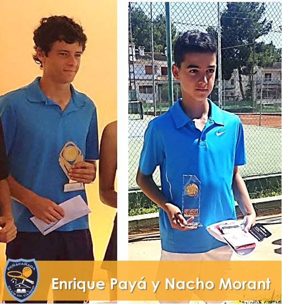 Los jugadores de la escuela de Peñacañada Quique Payá y Nacho Morant apuntan dos títulos más de campeón para el club.